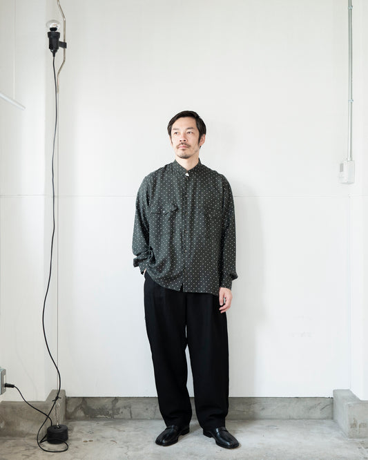 BRUSHED SILK TWILL DOT BAND COLLAR SHIRT