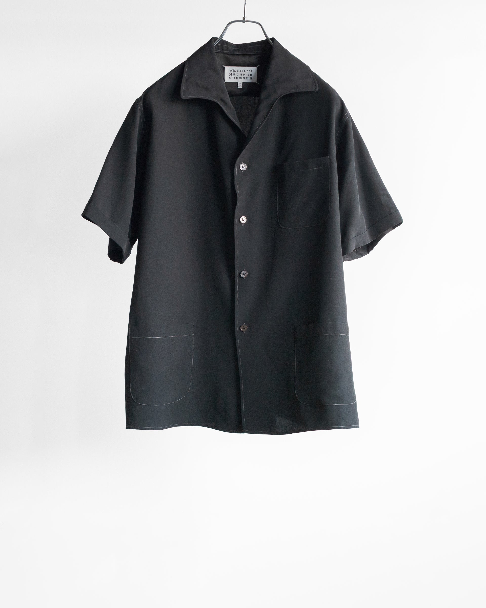 ステッチワークが印象的なワンピースカラーシャツ、半袖タイプでさらりと着られる仕上がりになっている、メゾンマルジェラらしい一着である。