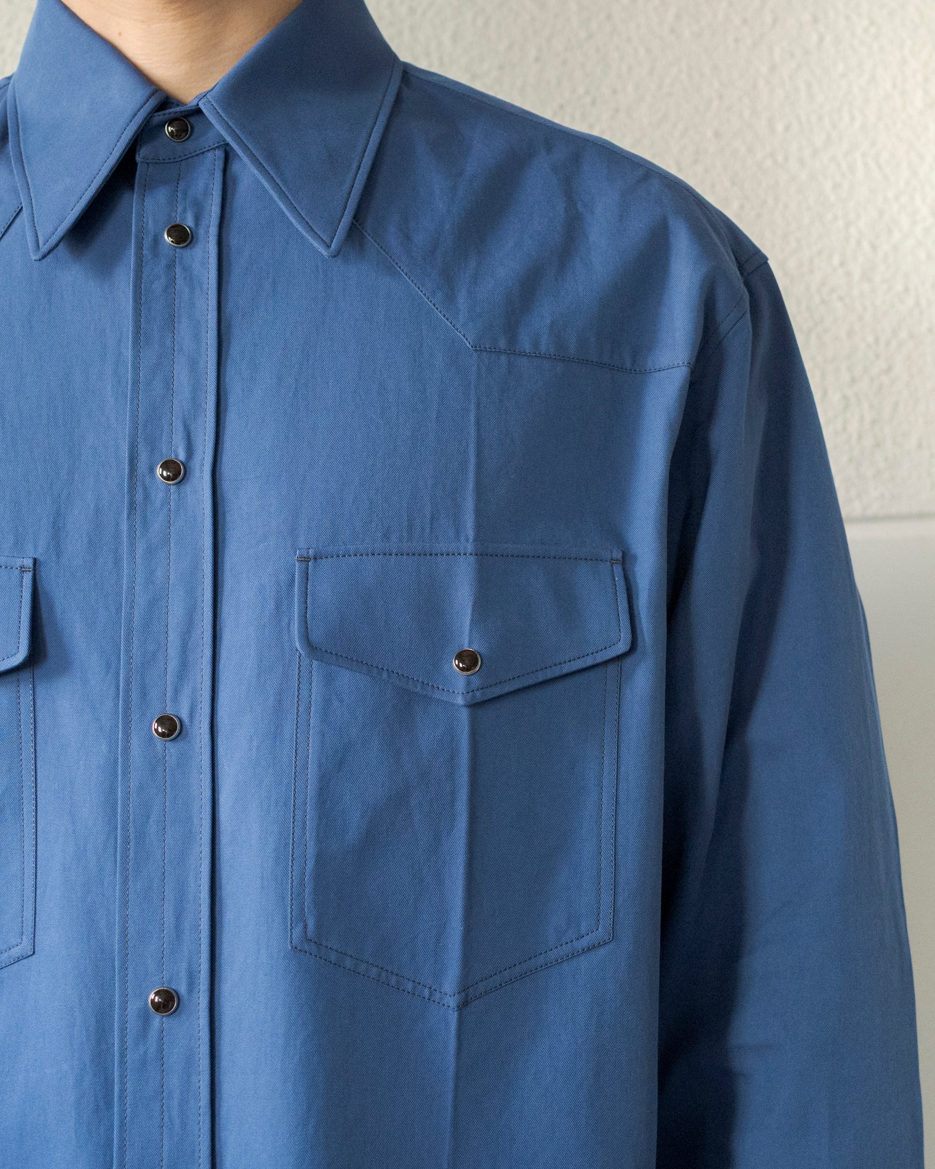 ルメールが提案するウェアの中でやや異彩を放つであろう、強さを感じさせる発色にまずは惹かれることになったウエスタンシャツである。