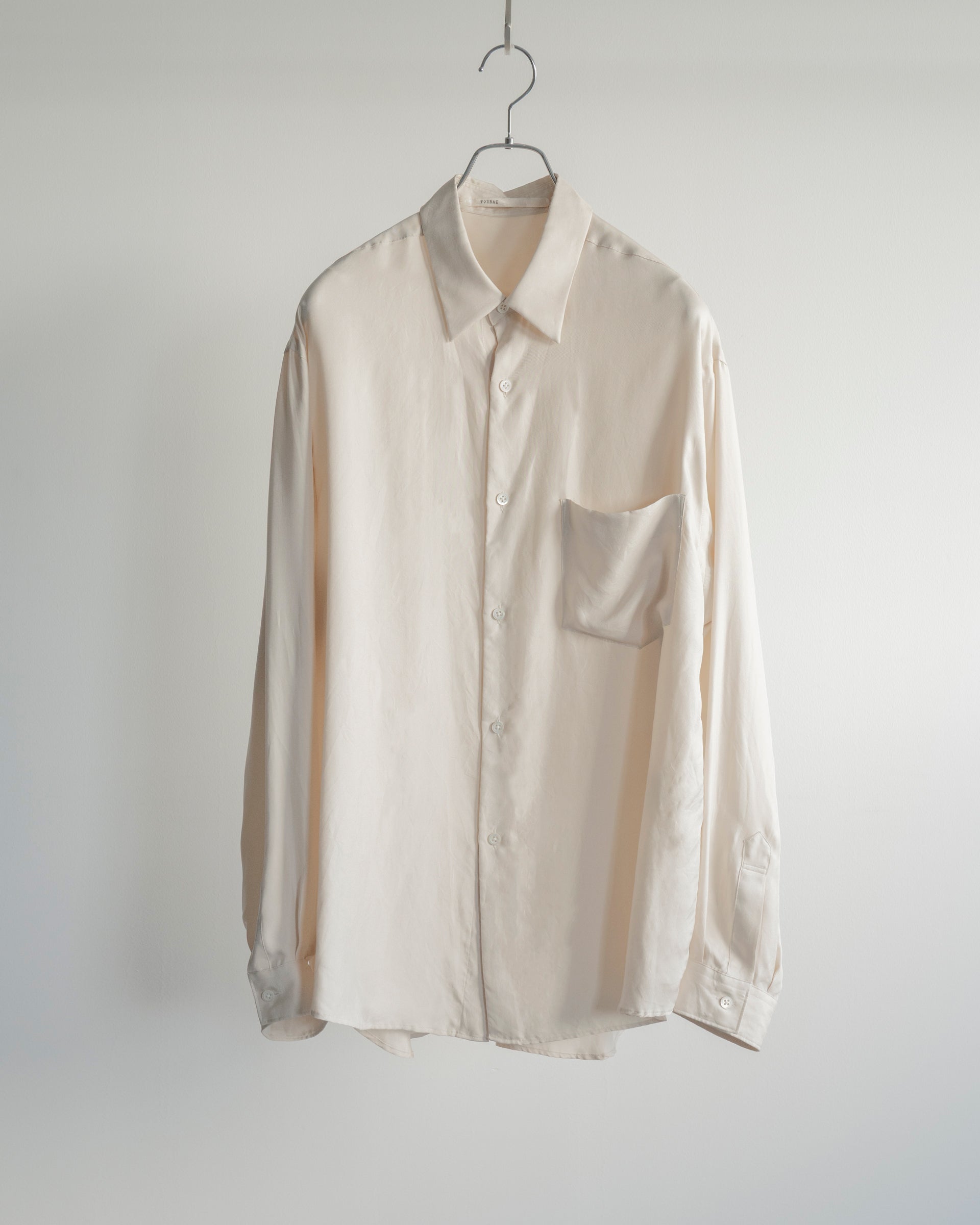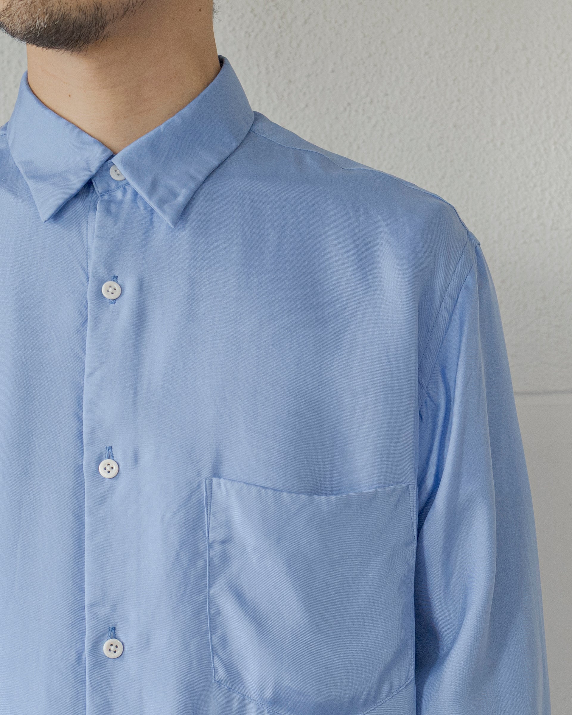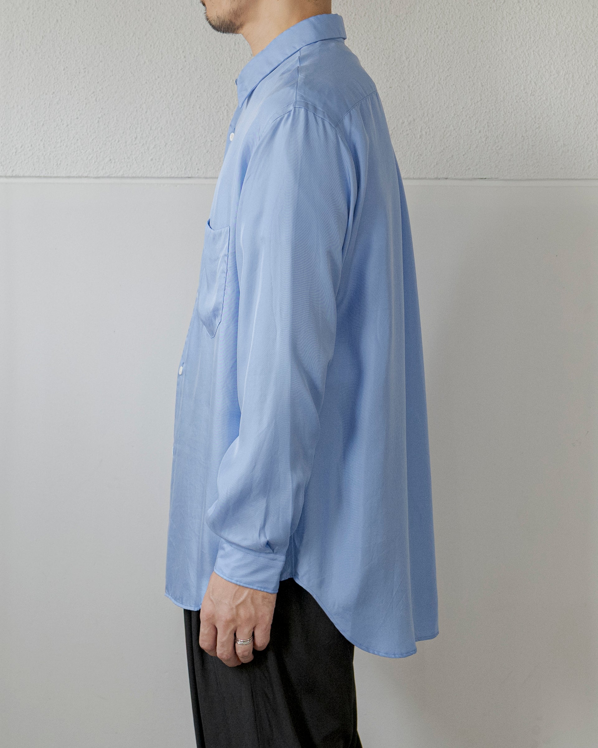 シルクの風合いとドレープ感を活かしたリラックスシルエットと相まって、日常的でありながら実にエレガントなシャツに仕上がっていると思う。
