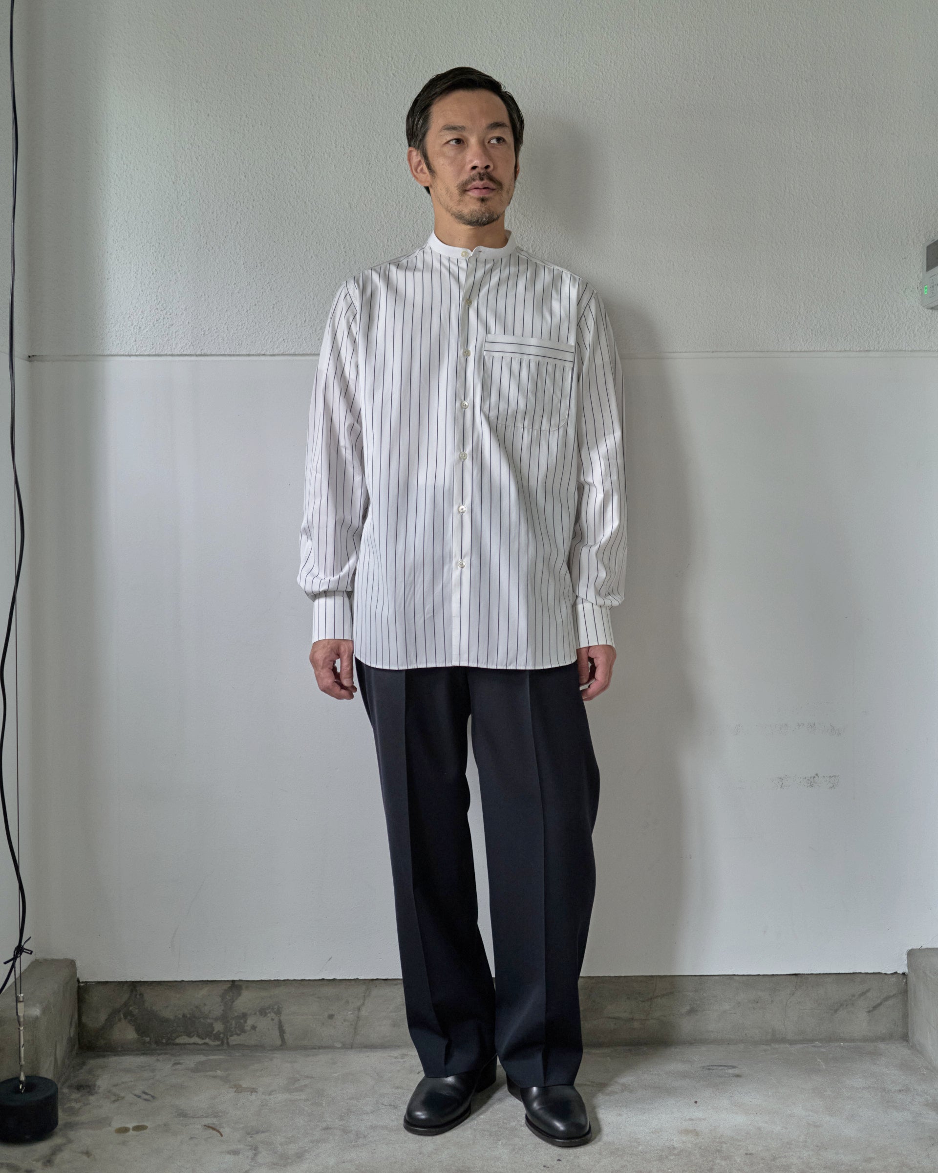 襟羽のないバンドカラーは通常にシャツに比べ自由さを象徴するデザインである。
