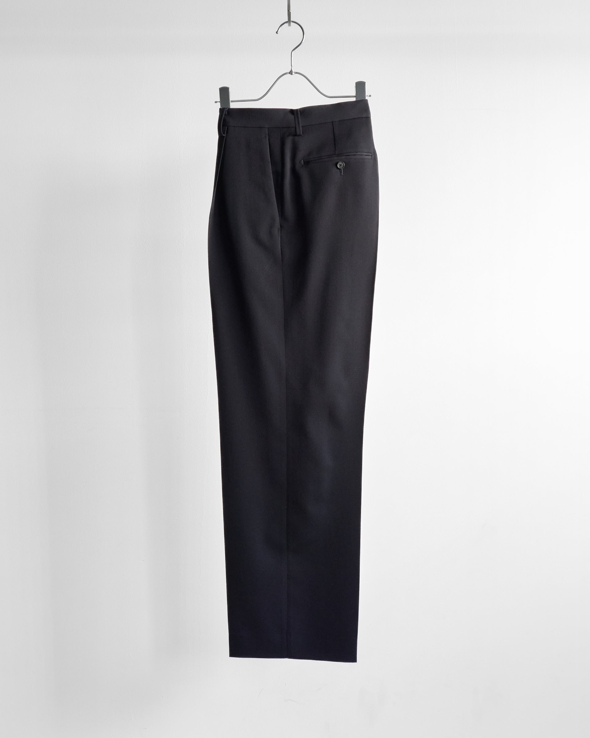 オフィシャルの説明では「ワンタックの腰穿きのストレートシルエット」とあるが、股上はしっかり30cm以上あるので、ウエストでも腰でも好きな方で合わせて穿いていただければと思う。