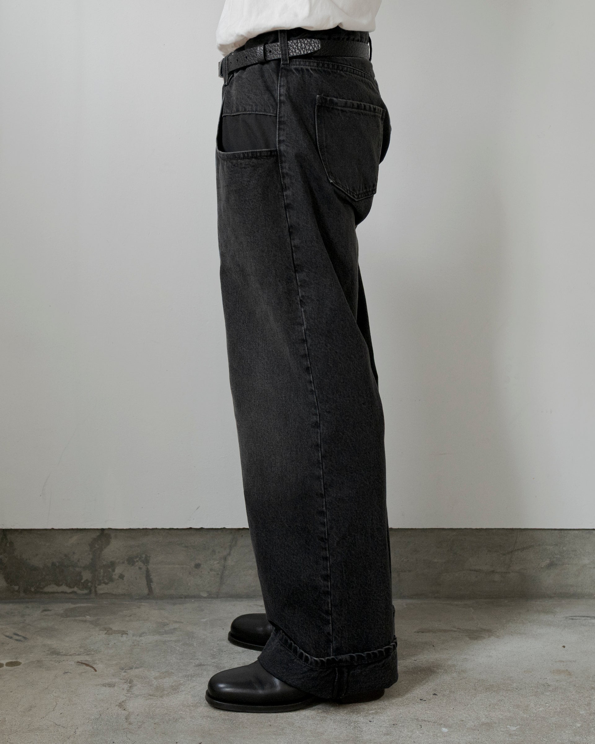シルエットはリラックスストレートなので足の線を拾わず、腿からストンと落ちるラインであるが、直線と曲線を一本の中で融合させることでジェンダーを超えることができたのかもしれない。