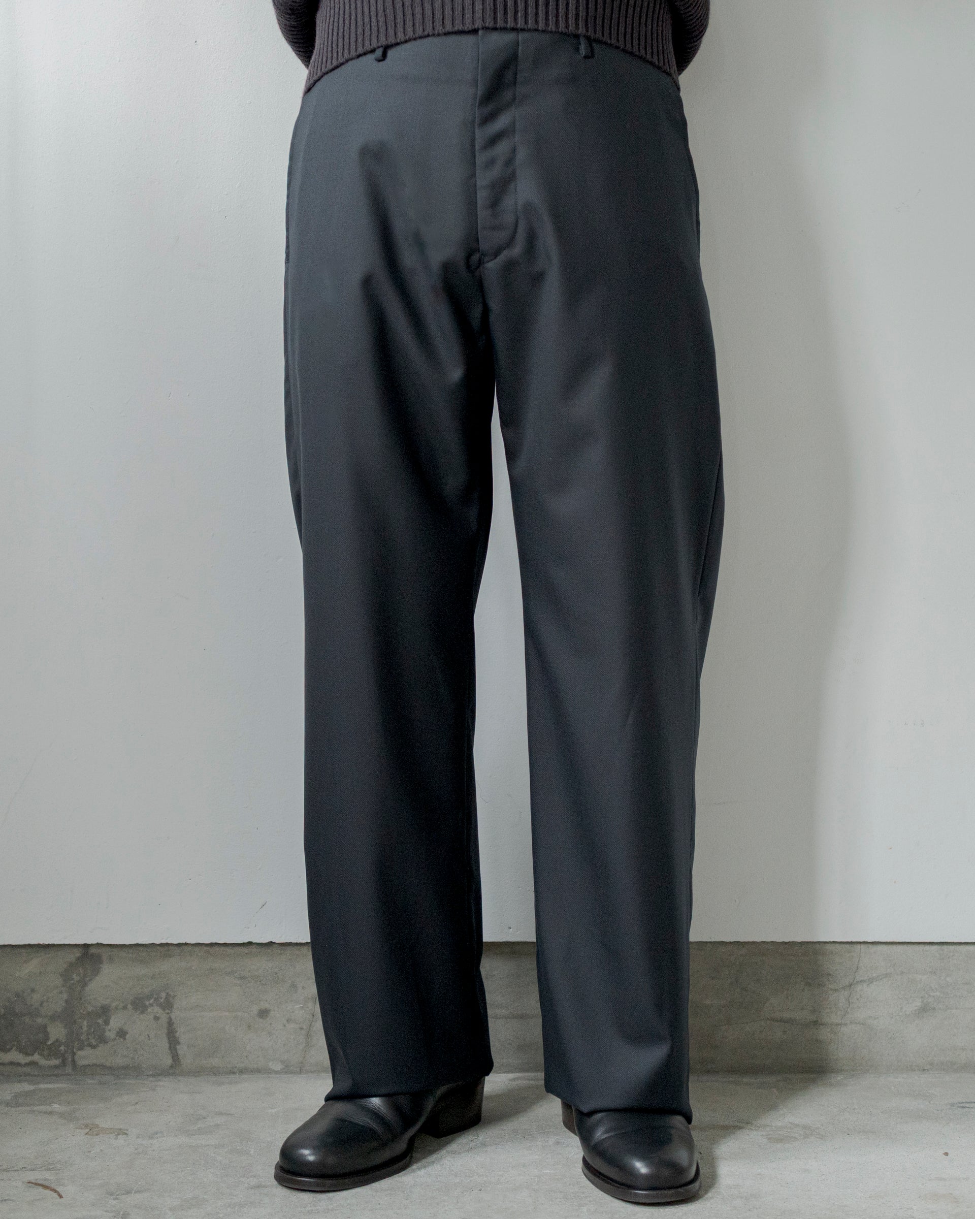 センタークリースのないカジュアルなストレートレッグパンツ、だが、仕立てはサルトリアル。