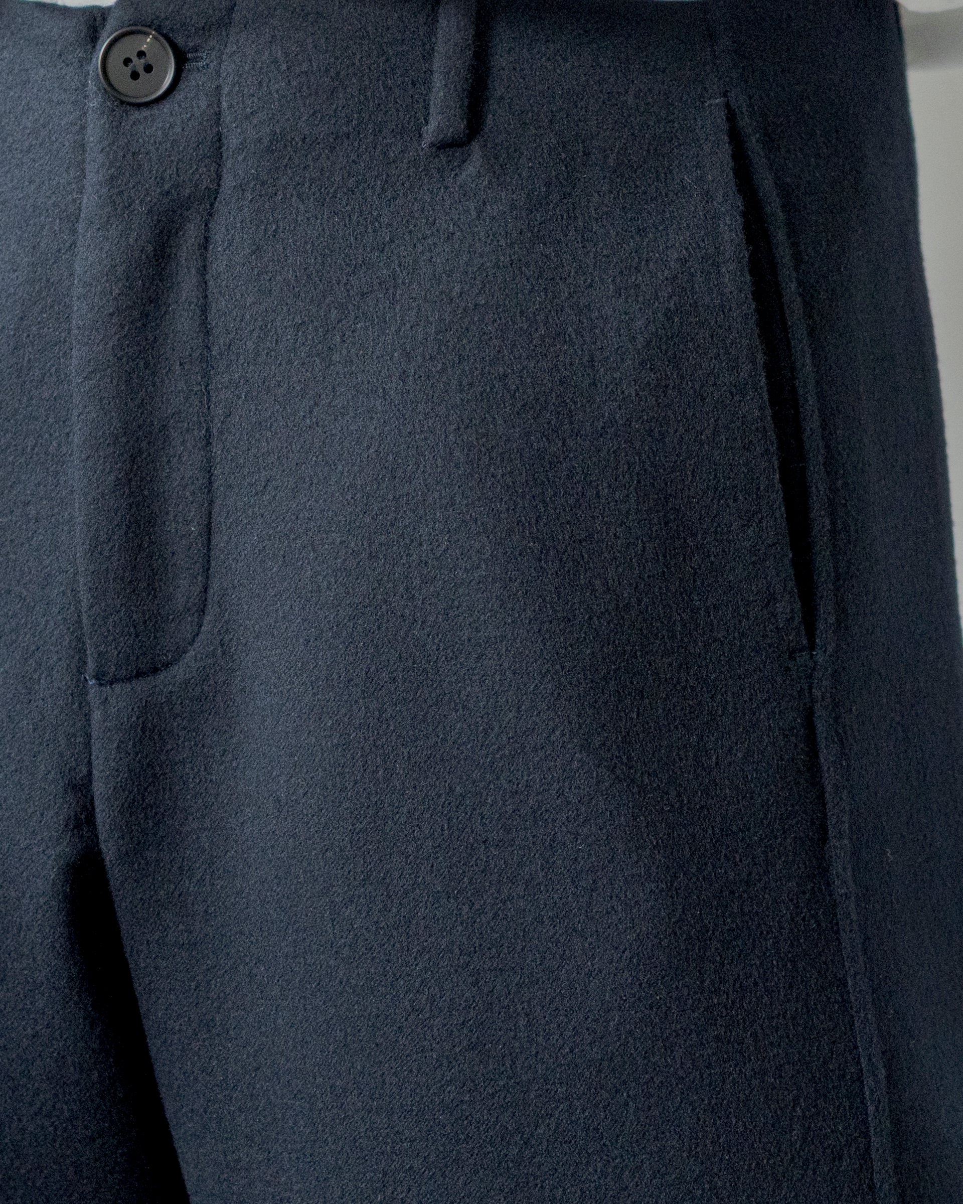 私自身、ダブルフェイス生地で仕立てられたパンツを初めて穿いたわけだが、これは癖になるかもしれない・・・。