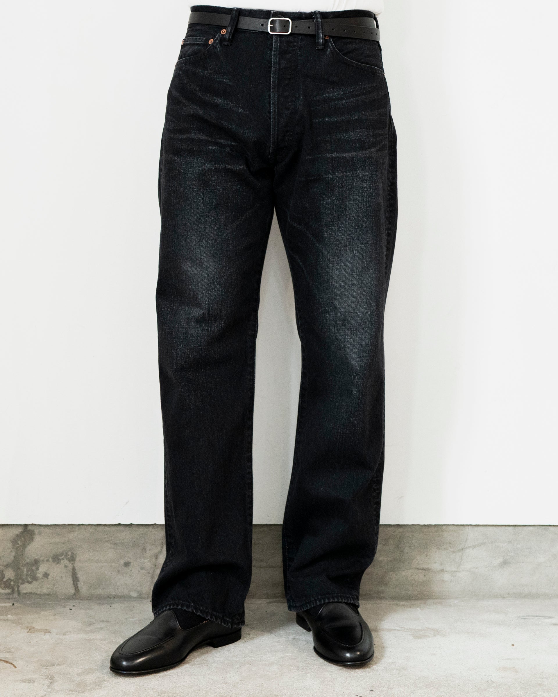 硫化染めはフェードしやすい特徴があるので、インディゴ染めのような経年変化も楽しむことができるところが魅力であり、長く穿き続けるのが楽しみな仕上がりだ。