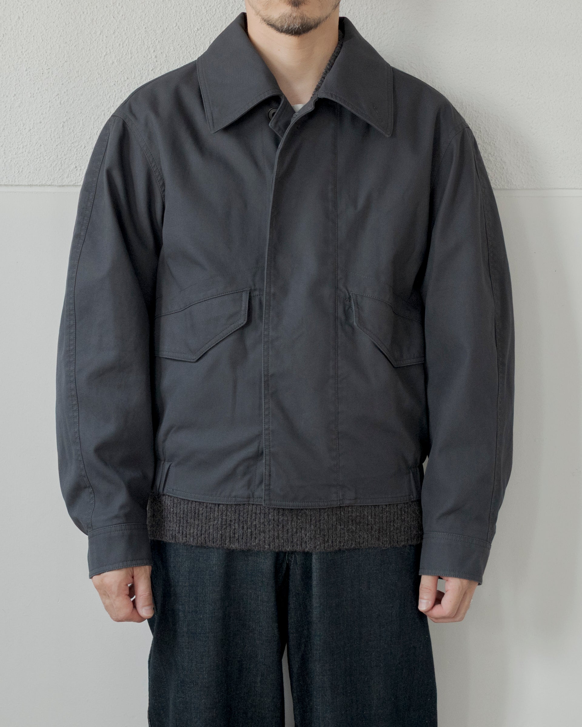 みるからにアジが出そうな生地、動くたびにカラカラと音が鳴るスナップボタン、後身頃裾の4cm幅ゴム、フラップポケットのデザイン。