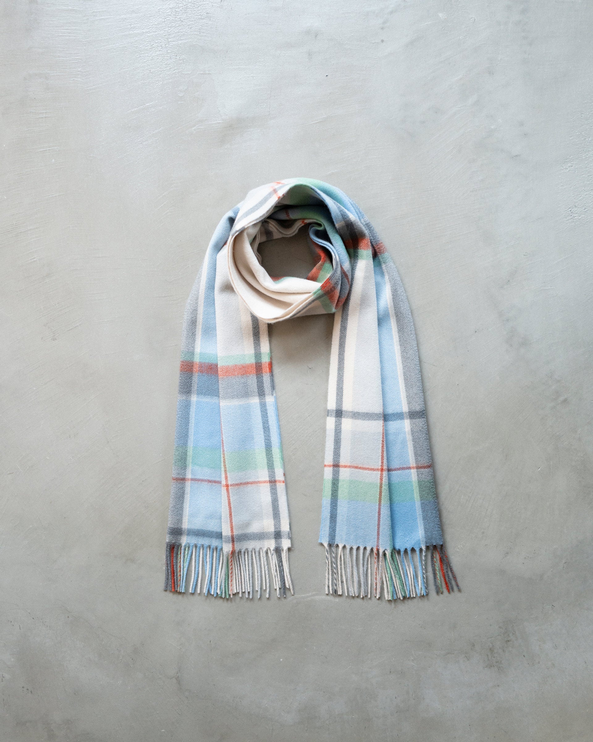 他にも英国やスコットランドの老舗でチェックのマフラーやストールを提案しているブランドはあるが、一番の違いはパターンの美しさと真似のできない配色である。