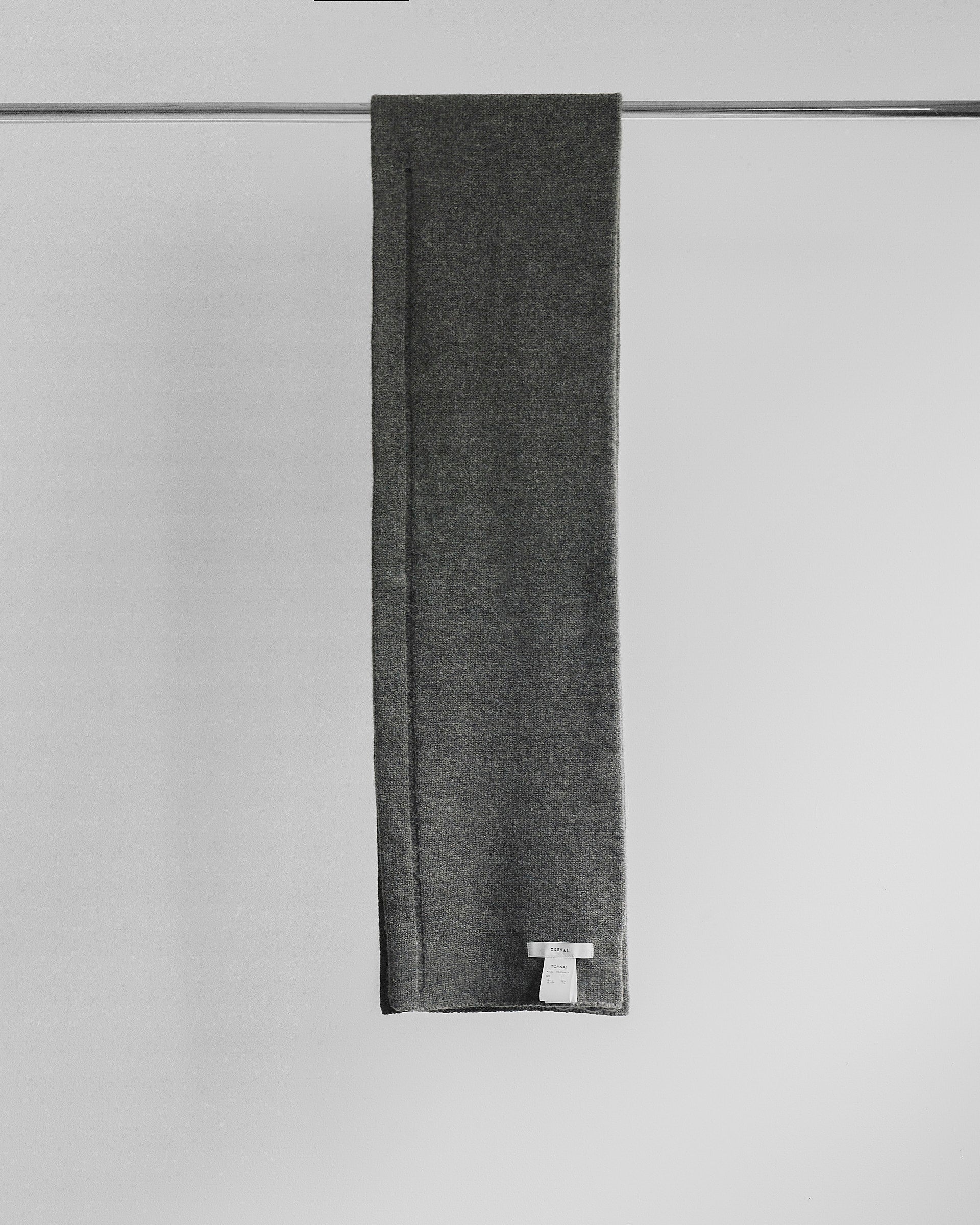 チューブ状に編み上げられたニットストール、目抜きやクラッシュ加工といったトーナイニットに共通するデザインが採用されている。