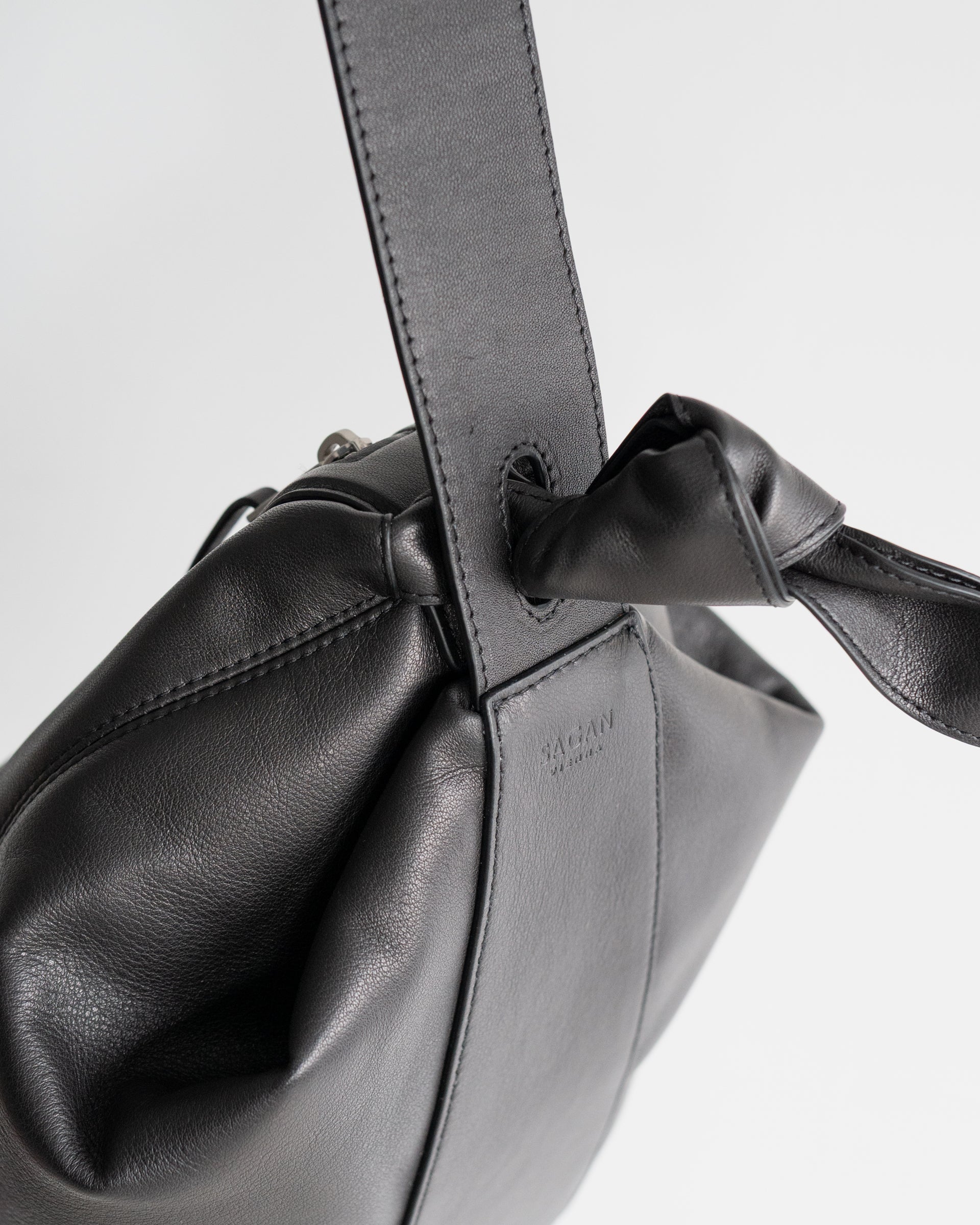 日常の瞬間を美しく昇華させる日本文化から深くインスピレーションを受けているサガン ヴィエンナらしい、曲線を巧みに用いた柔らかなフォルムが美しく、アイコンとなる風呂敷ライクなノットデザインがチャーミングな仕上がりである。