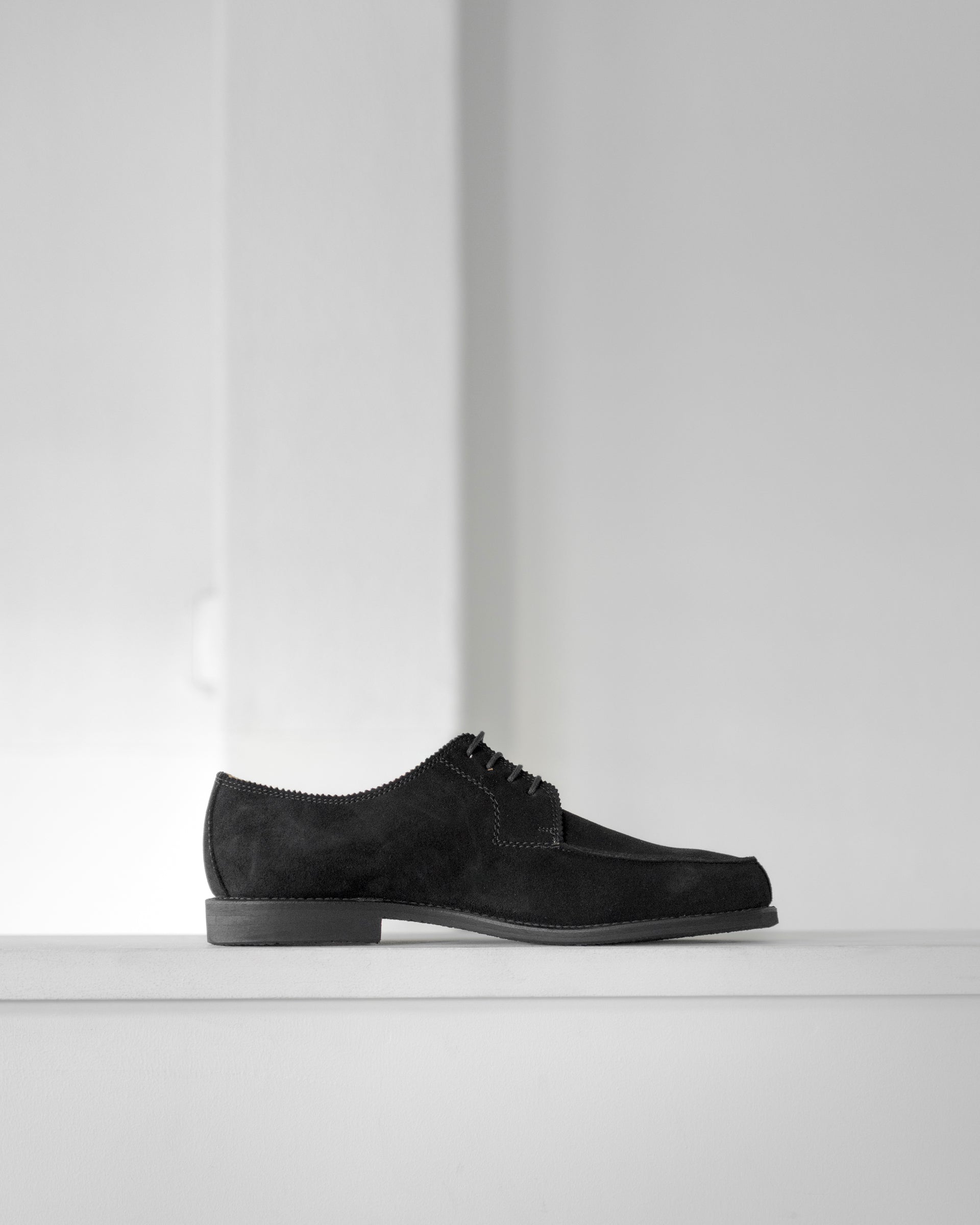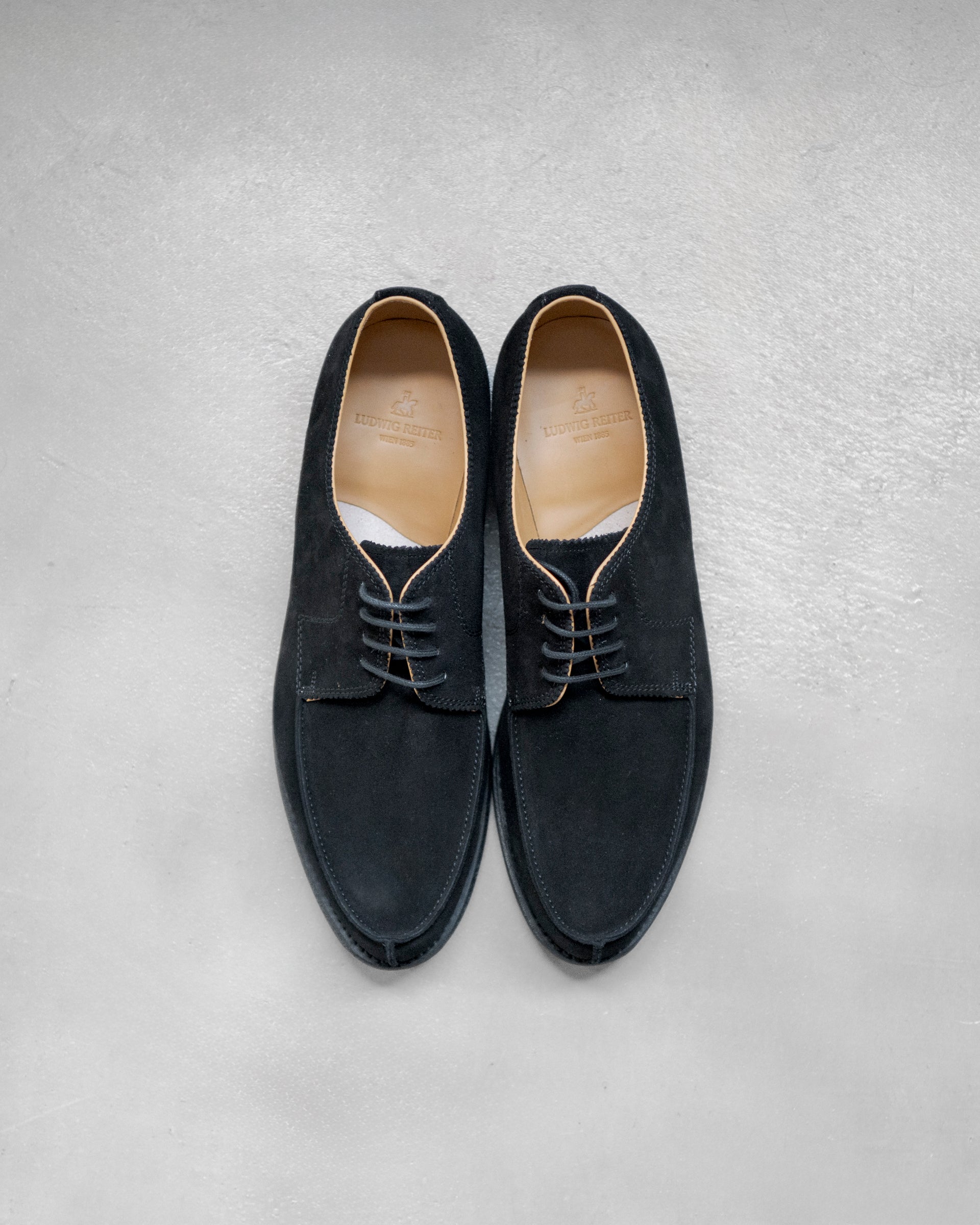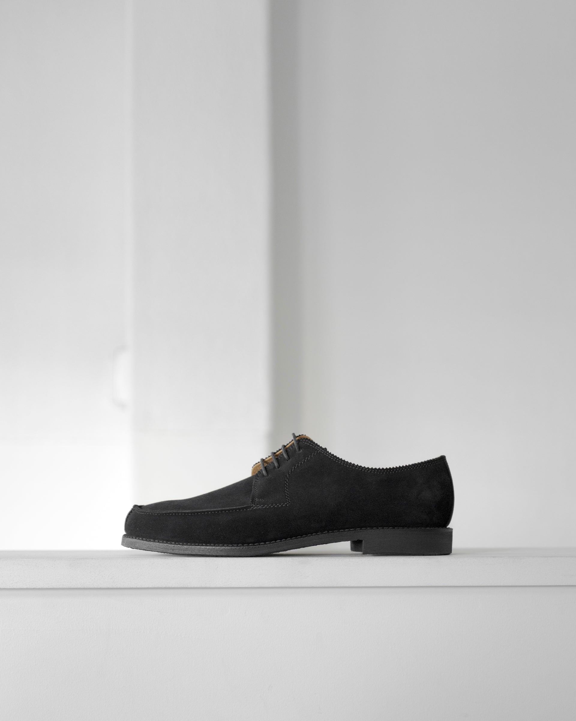 いわゆるUチップの別名をそのままモデル名にしている、いかにもクラフトマンシップに溢れるブランドならではという感じではあるが、仕上がっているシューズの空気感は極めて洗練されている。